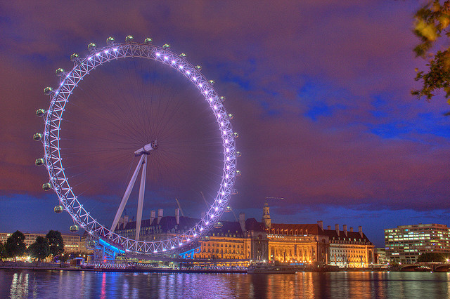 为了庆祝千禧年的到来,一座巨大的摩天轮矗立在了泰晤士河畔。这曾经是世界上最早最大的观景摩天轮。原计划只打算让它存在五年。可“The London eye”一开放,便迅速成为整个伦敦最热门的旅游景点之一。因此也被长久的保存了下来。伦敦眼运行一圈要三十分钟,有足够时间供游人鸟瞰整个美丽的伦敦。